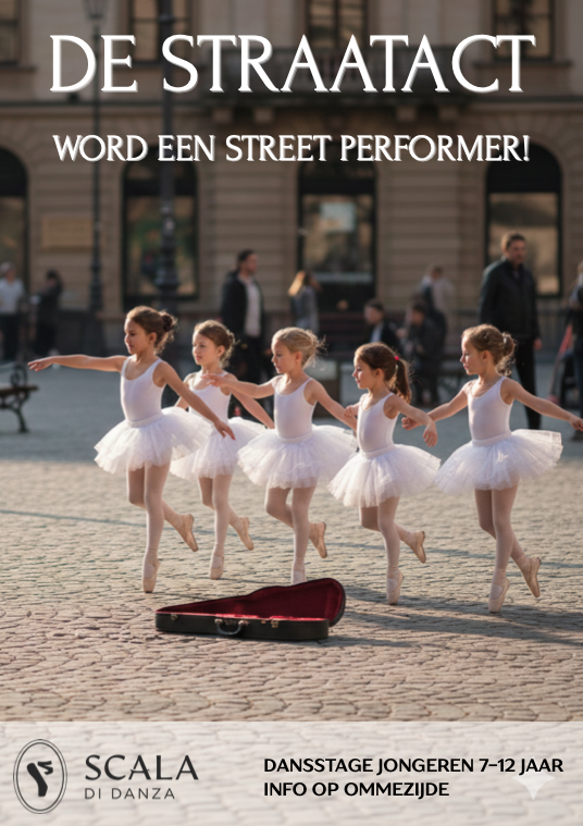 Tijdens deze dansstage voor 7- tot 12-jarigen werken we een hele week lang aan een dansshow. Op de laatste dag gaan we de straat op om te dansen tussen de mensen zoals echte street performers. Een nieuwe en unieke ervaring